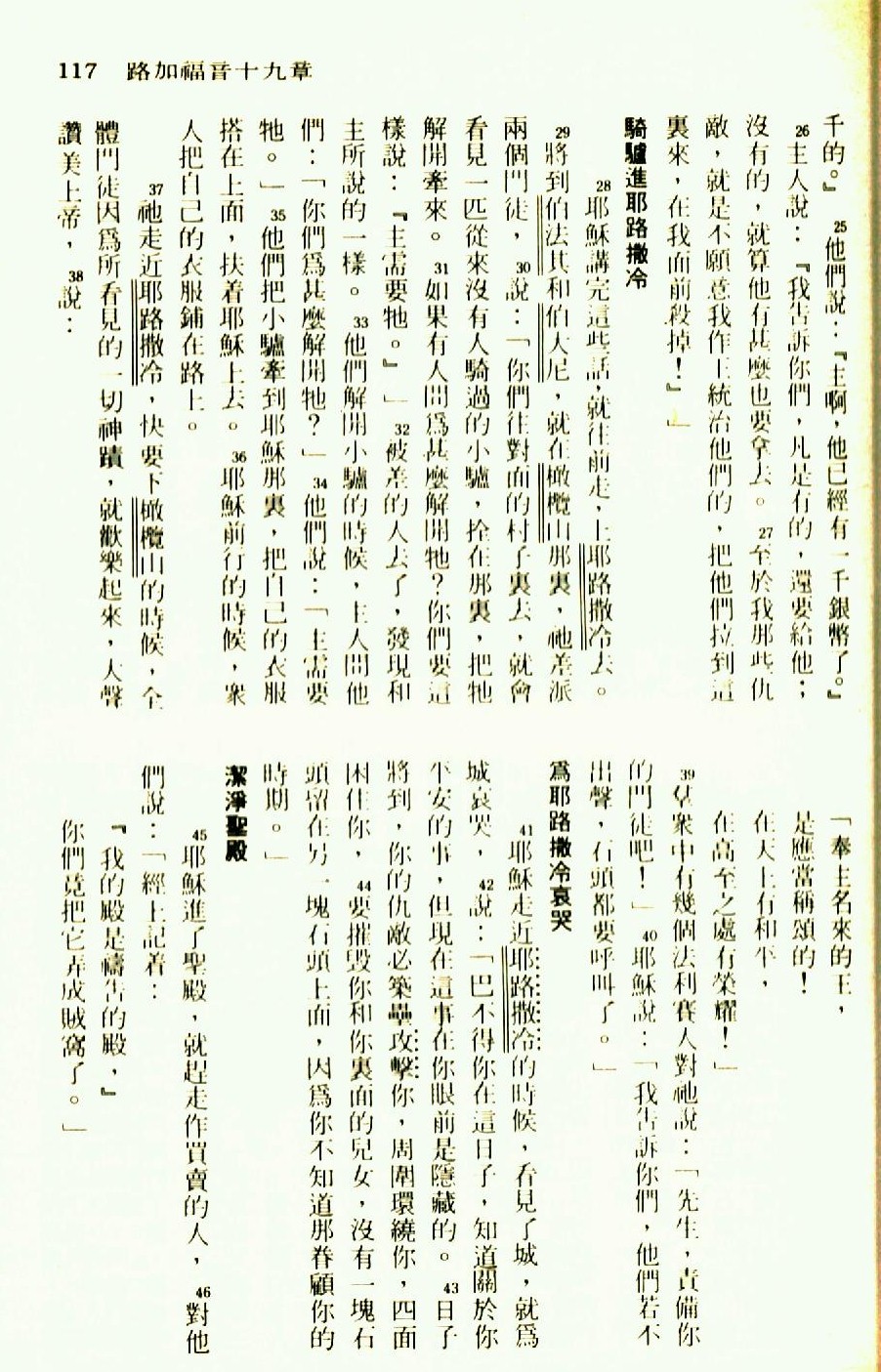 1976年聖經新譯本新約 路加福音 19 章 25 節到 19 章 46 節