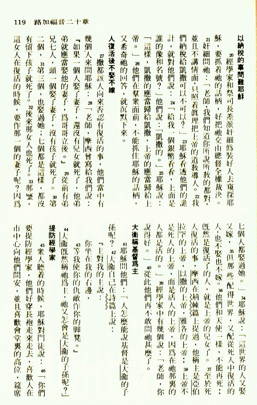 1976年聖經新譯本新約 路加福音 20 章 20 節到 20 章 46 節