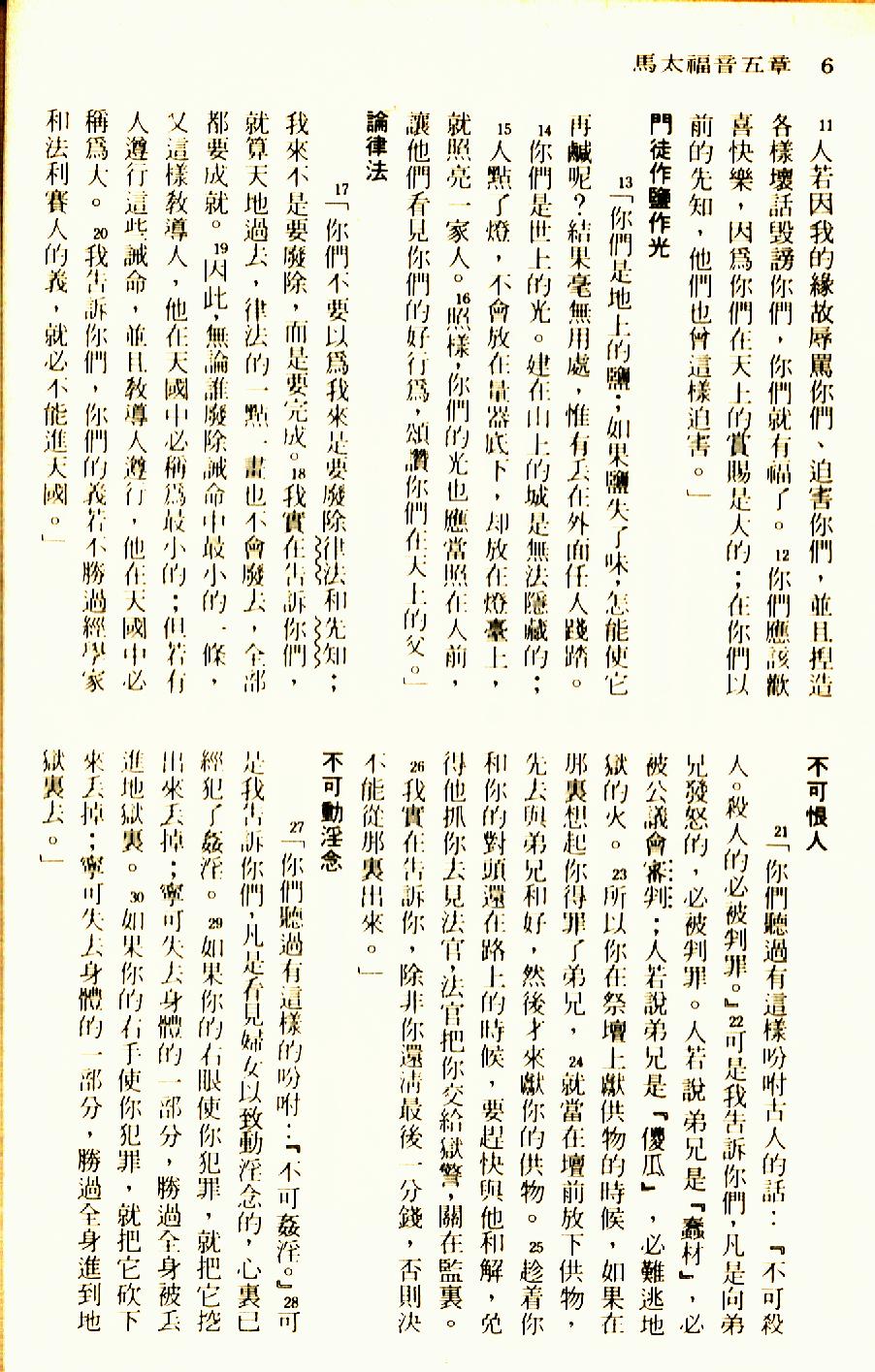 1976年聖經新譯本新約 馬太福音 5 章 11 節到 5 章 30 節