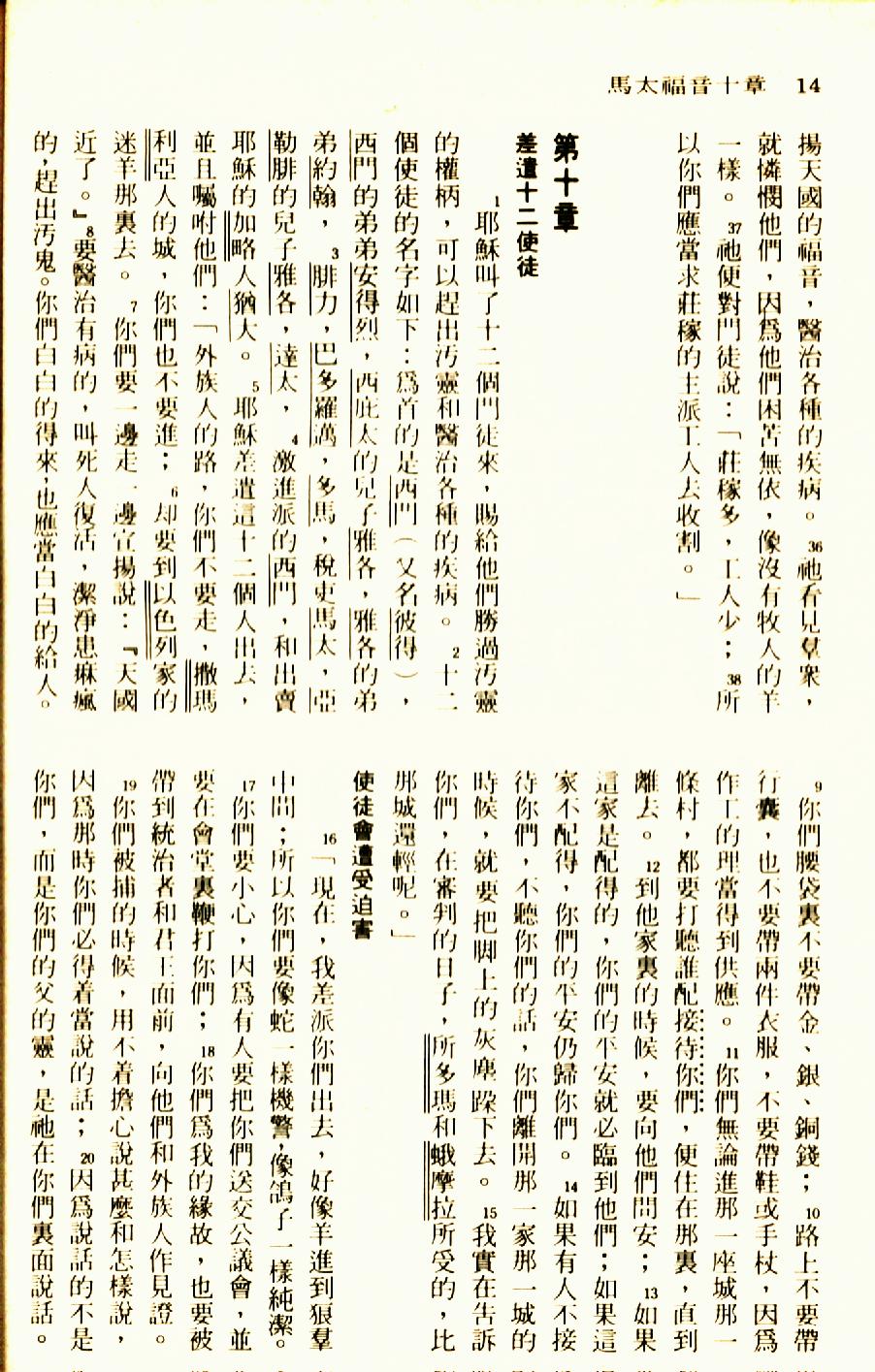 1976年聖經新譯本新約 馬太福音 9 章 35 節到 10 章 20 節