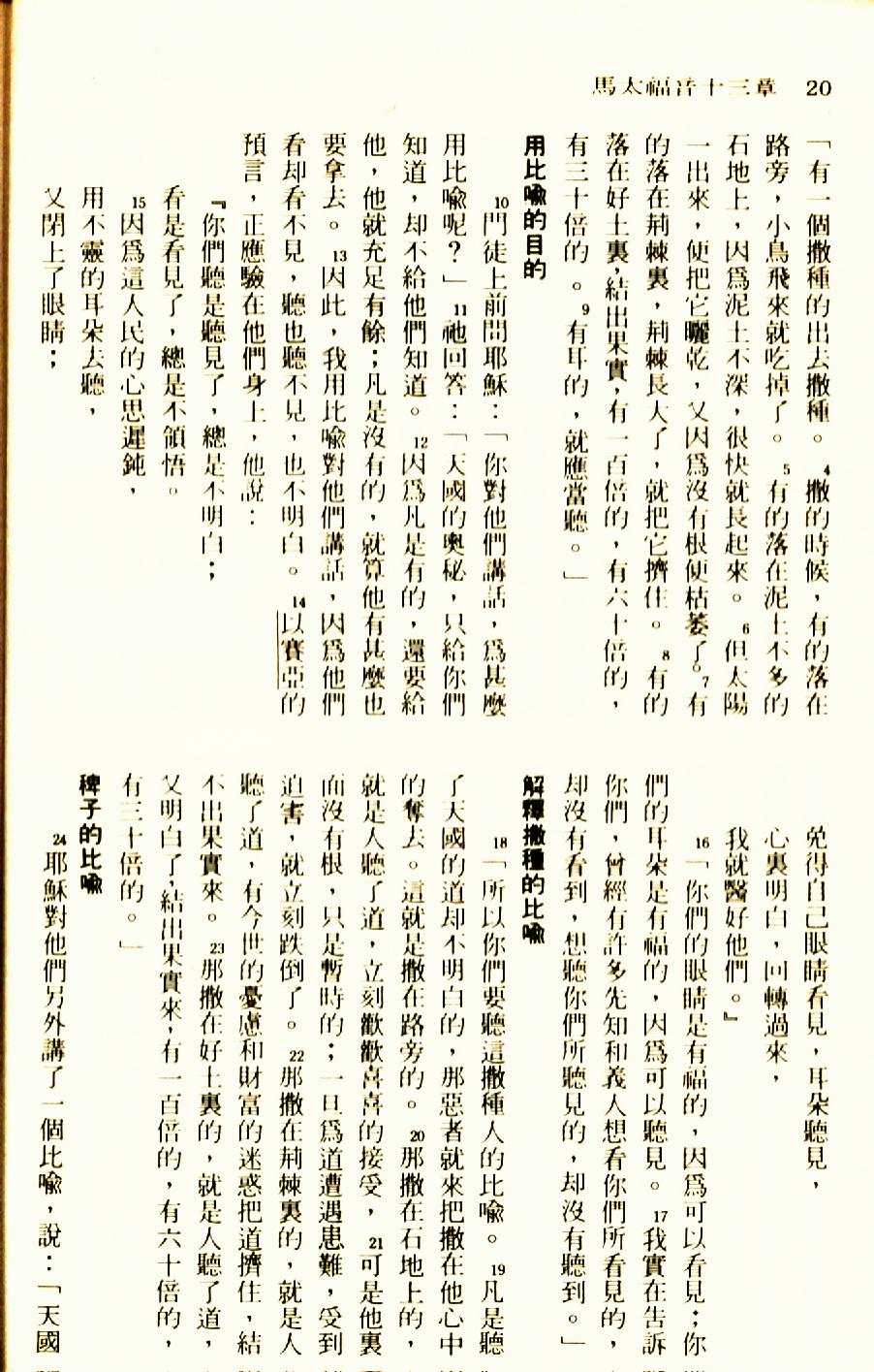 1976年聖經新譯本新約 馬太福音 13 章 4 節到 13 章 24 節