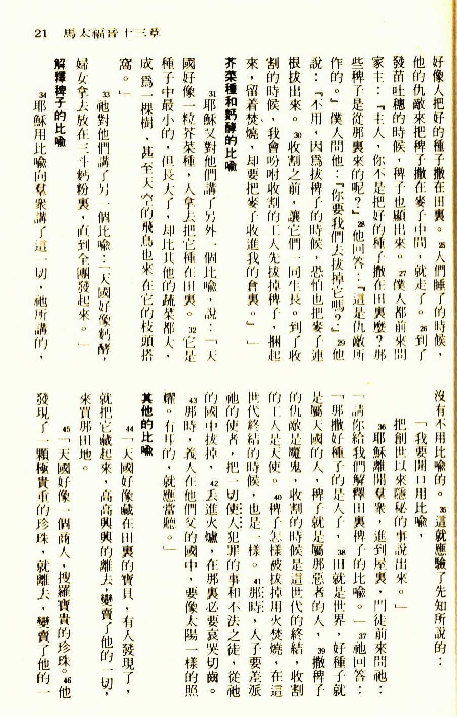 1976年聖經新譯本新約 馬太福音 13 章 25 節到 13 章 46 節