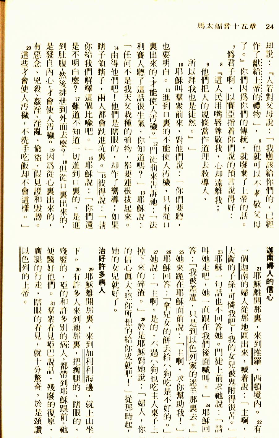 1976年聖經新譯本新約 馬太福音 15 章 6 節到 15 章 31 節