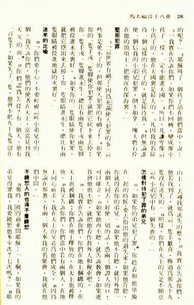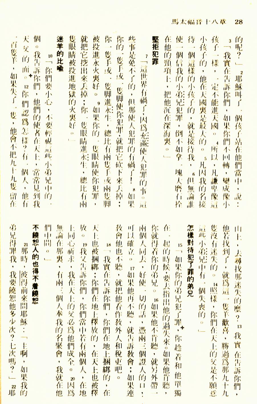 1976年聖經新譯本新約 馬太福音 18 章 2 節到 18 章 22 節