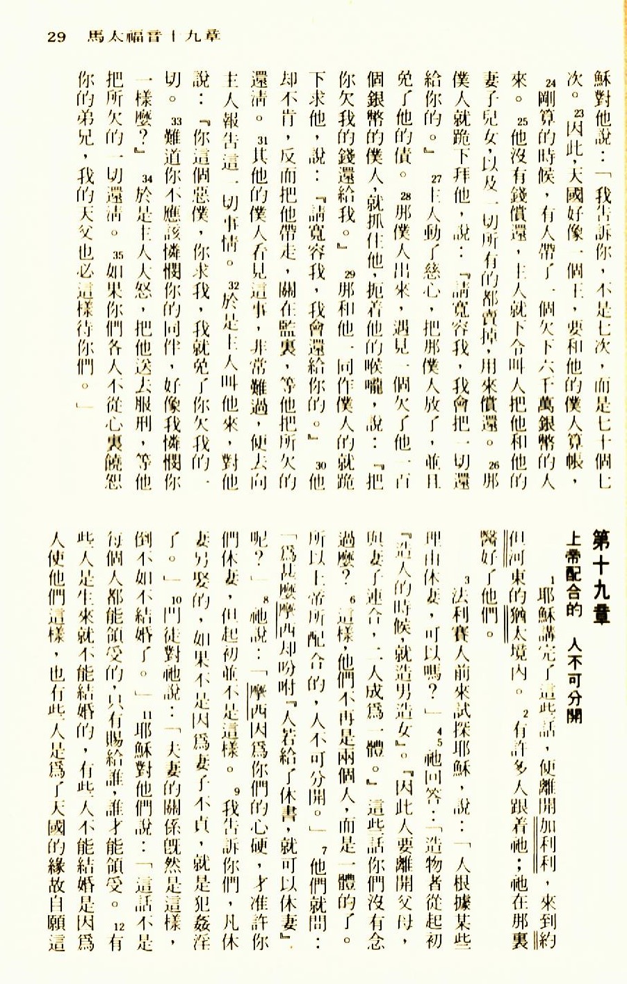 1976年聖經新譯本新約 馬太福音 18 章 23 節到 19 章 12 節