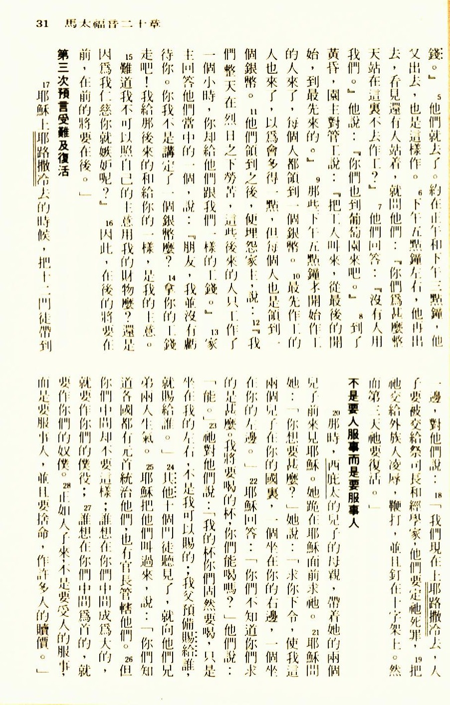 1976年聖經新譯本新約 馬太福音 20 章 5 節到 20 章 28 節