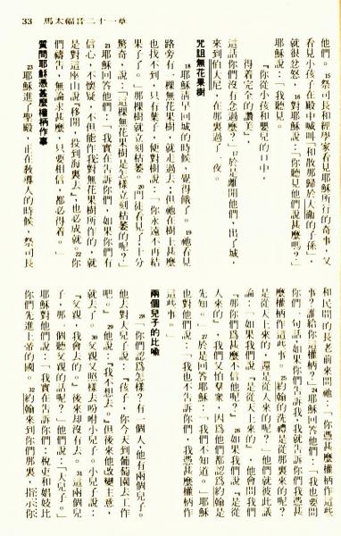1976年聖經新譯本新約 馬太福音 21 章 15 節到 21 章 32 節
