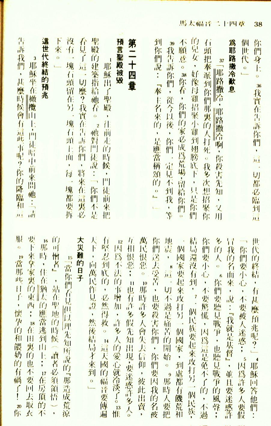 1976年聖經新譯本新約 馬太福音 23 章 36 節到 24 章 20 節