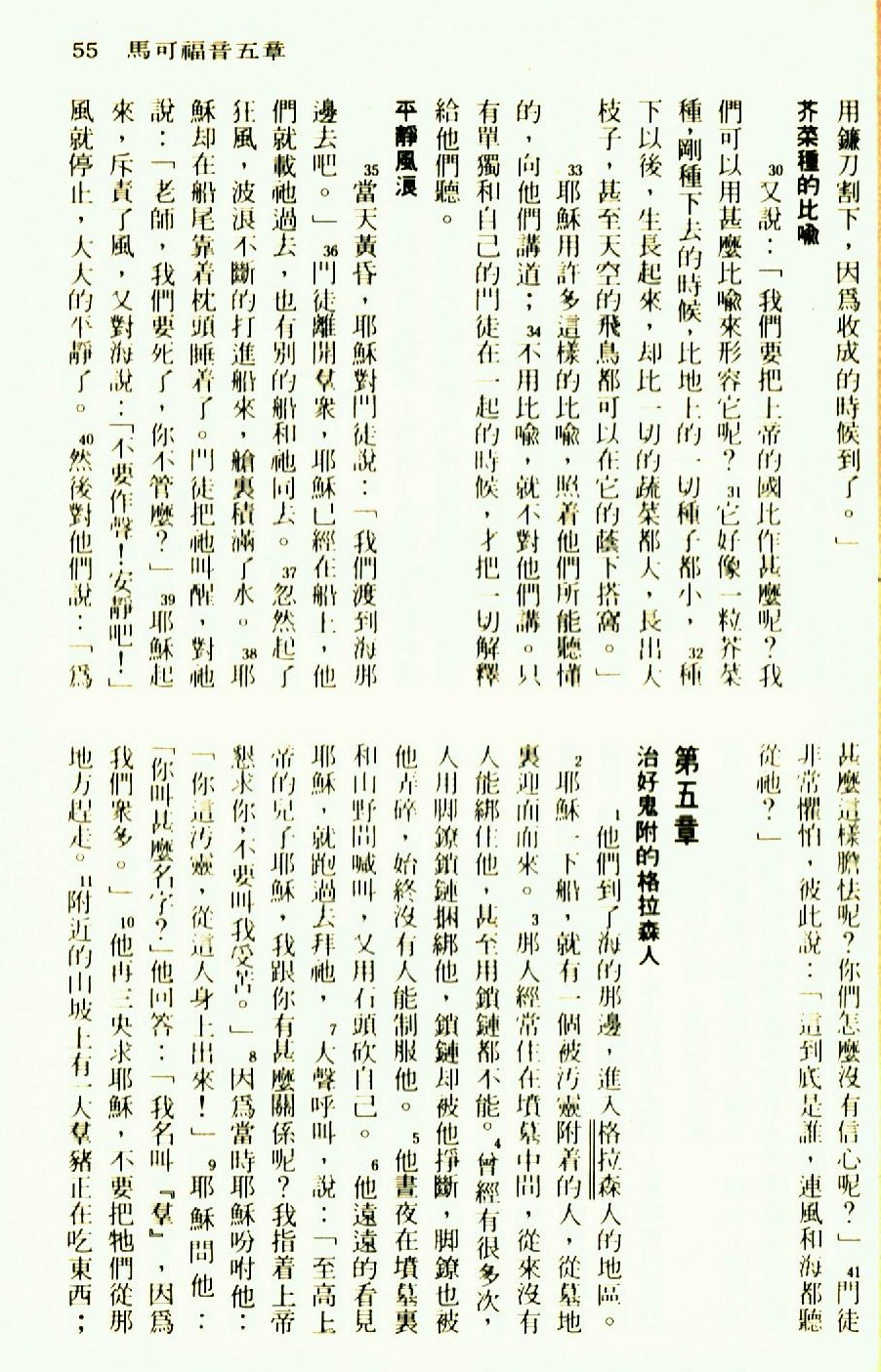 1976年聖經新譯本新約 馬可福音 4 章 30 節到 5 章 11 節