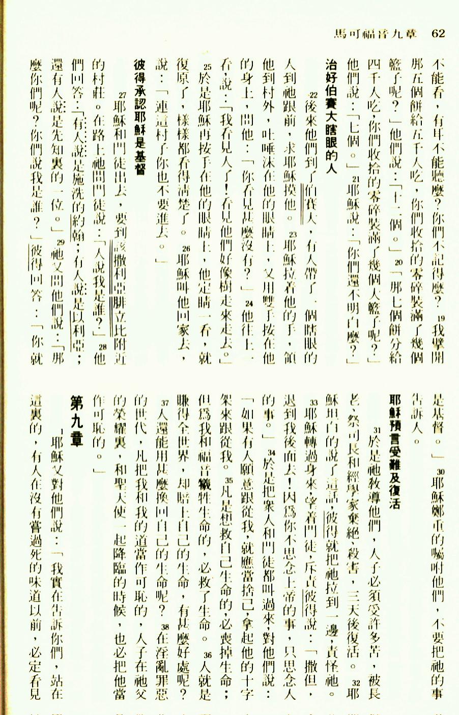 1976年聖經新譯本新約 馬可福音 8 章 19 節到 9 章 1 節