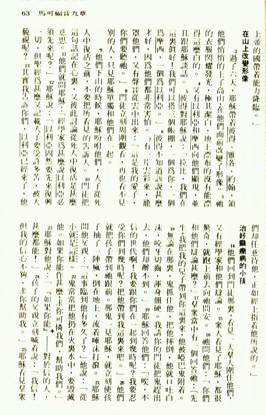 1976年聖經新譯本新約 馬可福音 9 章 2 節到 9 章 25 節
