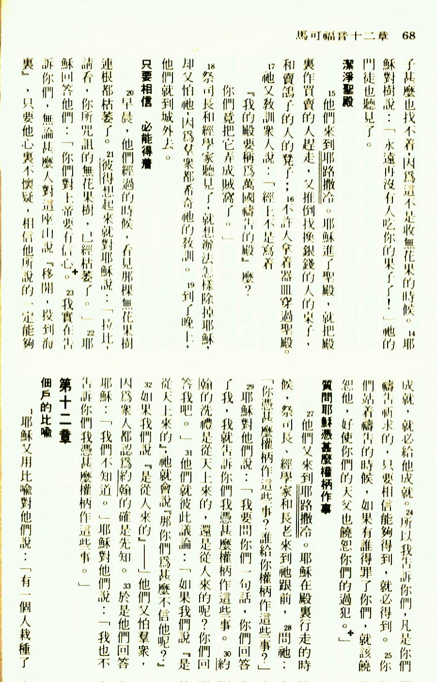1976年聖經新譯本新約 馬可福音 11 章 14 節到 12 章 1 節