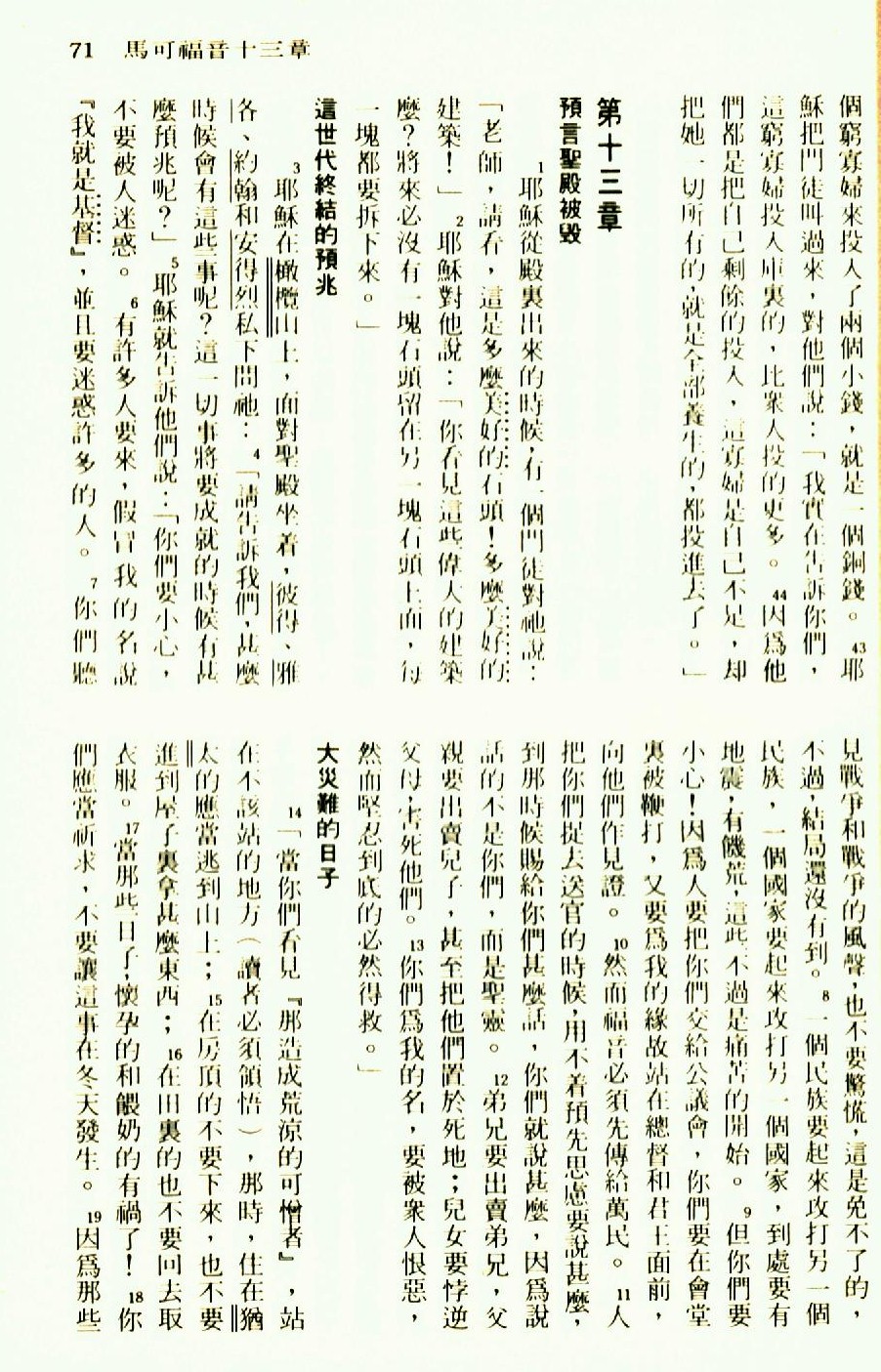1976年聖經新譯本新約 馬可福音 12 章 43 節到 13 章 19 節