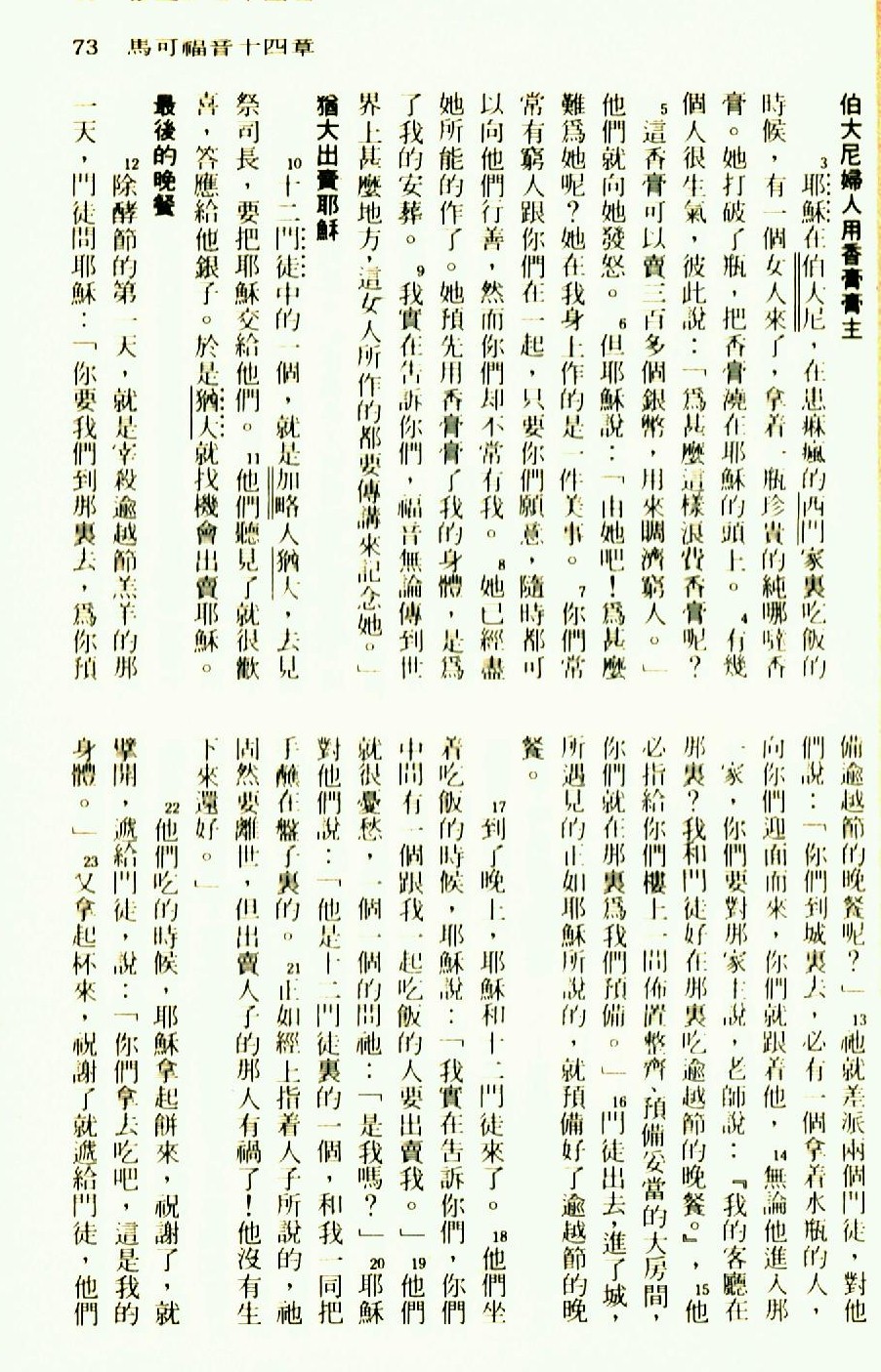 1976年聖經新譯本新約 馬可福音 14 章 3 節到 14 章 23 節
