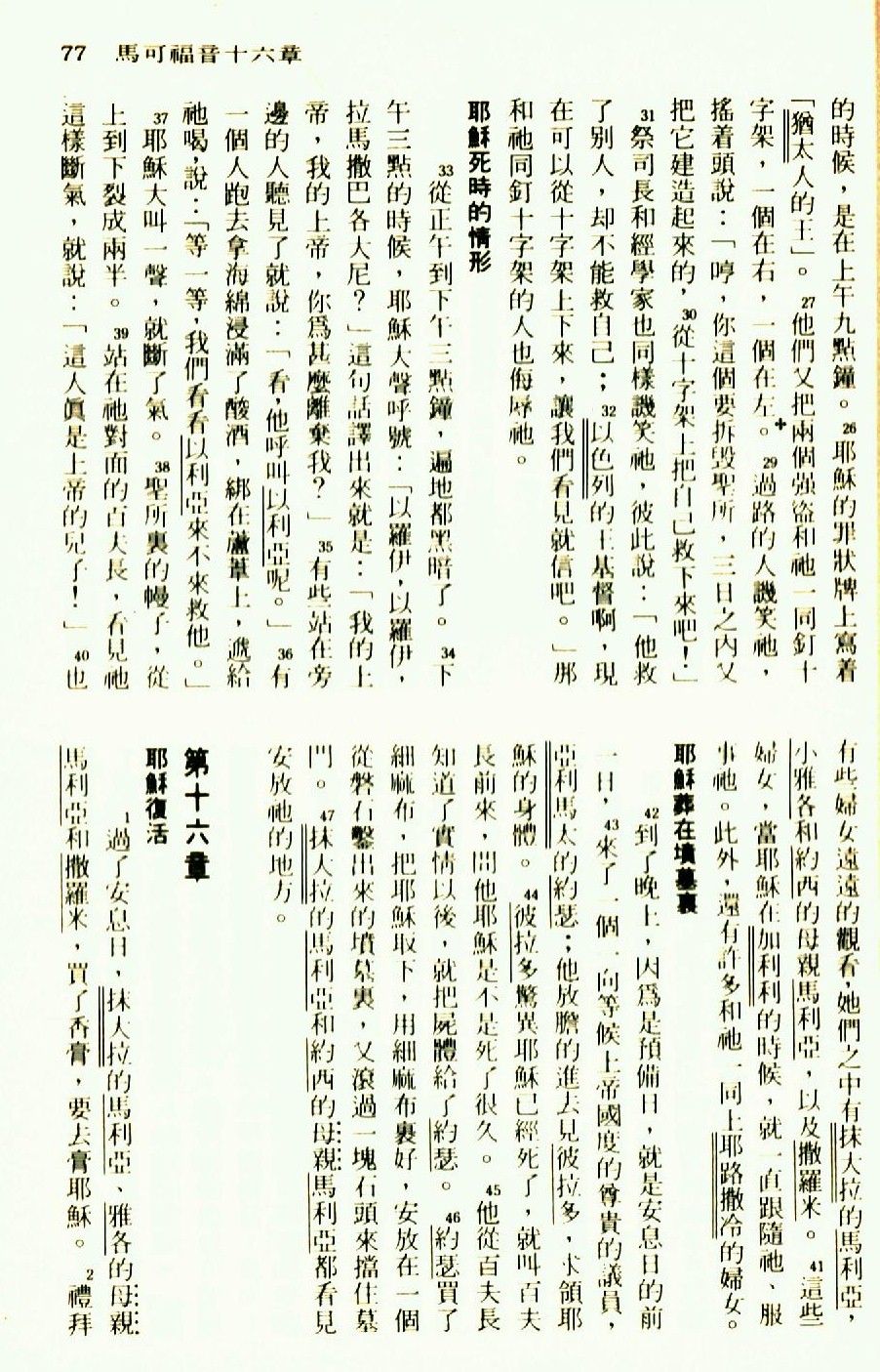 1976年聖經新譯本新約 馬可福音 15 章 26 節到 16 章 2 節