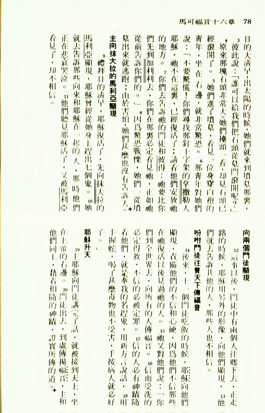 1976年聖經新譯本新約 馬可福音 16 章 3 節到 16 章 20 節