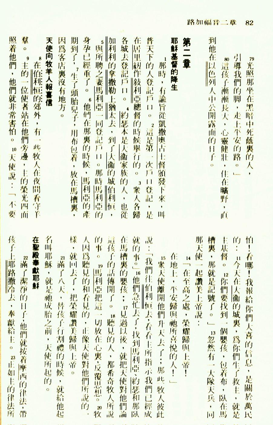 1976年聖經新譯本新約 路加福音 1 章 79 節到 2 章 23 節